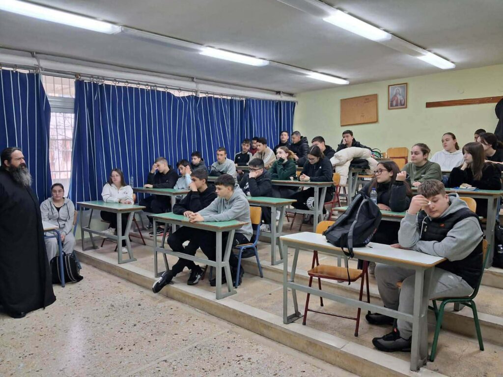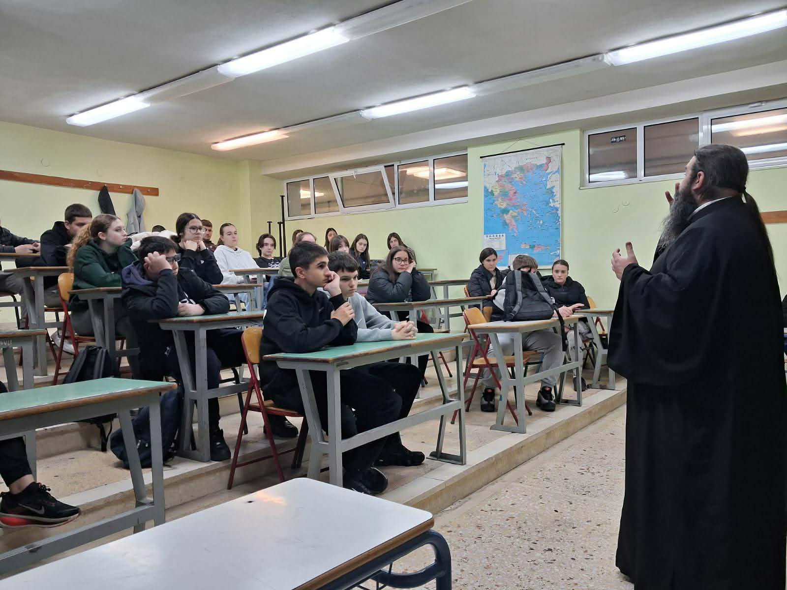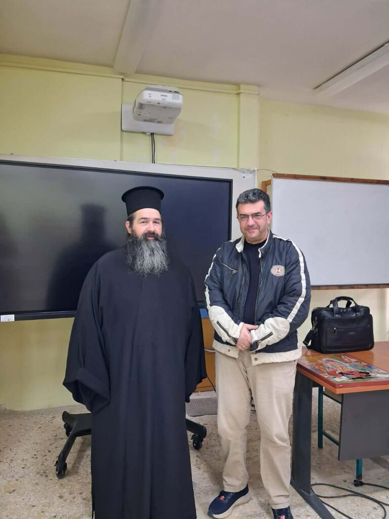 Στο πλαίσιο συνεργασίας του σχολείου μας με την Ι. Μητρόπολη Δημητριάδος, πραγματοποιήθηκε συνάντηση των τμημάτων Γ1 και Γ2 με τον π. Φιλοκτήμονα Σταμόπουλο , ιεροκήρυκα της τοπικής μας εκκλησίας στο πλαίσιο εορτασμού του Πάσχα. Ακολούθησε εποικοδομητική συζήτηση μεταξύ των μαθητών και του ιερέα για τις προκλήσεις που αντιμετωπίζουν οι νέοι μας σήμερα. Την εν λόγω δράση διοργάνωσε ο θεολόγος του σχολείου κ. Γιώργος Παρλιάρος σε συνεργασία με την Δ/νση του σχολείου και τη Μητρόπολη.